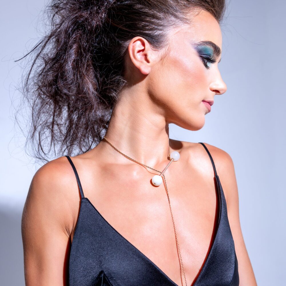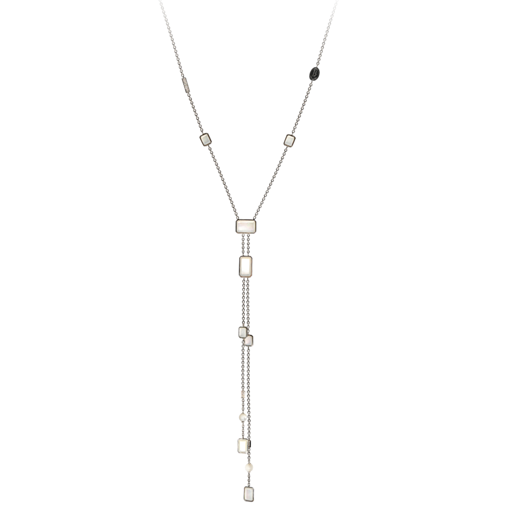 Sautoir Necklace Pink Quartz, Rhodolite.