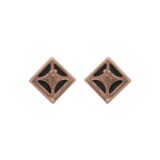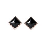 Pink Gold Earrings 12 mm (0.47 inches) with Black Jade shaped in Pyramids and Diamonds (18 diamonds for 0.16ct)