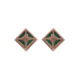 18 kt Pink Gold Earrings 8mm (0.31 inches) with Malachites & Diamonds