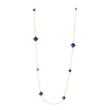 Yellow Gold “Sautoir” Necklace of 120cm (47.2 inches) long with 10 Doubled Sided Lapis Lazuli Pyramids: