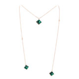 Long Sautoir Necklaces withe 1 double Sided Malachite Pyramid of 12 mm (0.47 inches) and 2 double Sided Malachite Pyramids of 10 mm (0.39 inches).