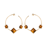 18kt Yellow gold Hoops Earrings 60mm (2.36 inches) with Double Sided Malachites shaped in Pyramids with Diamonds