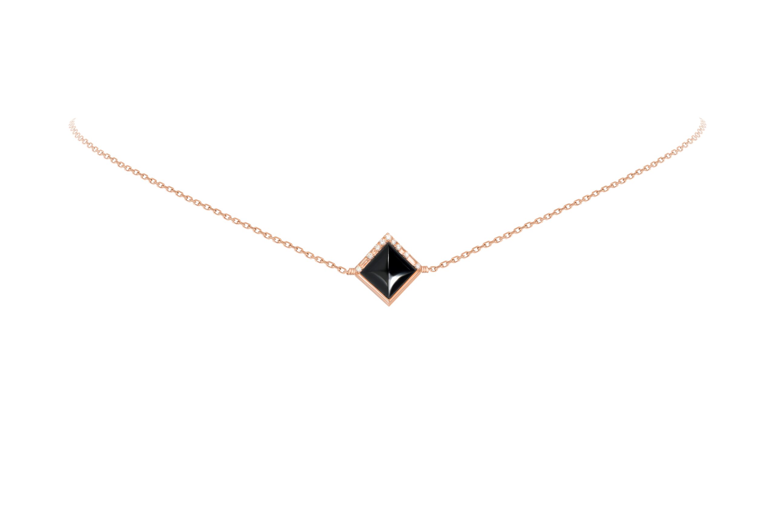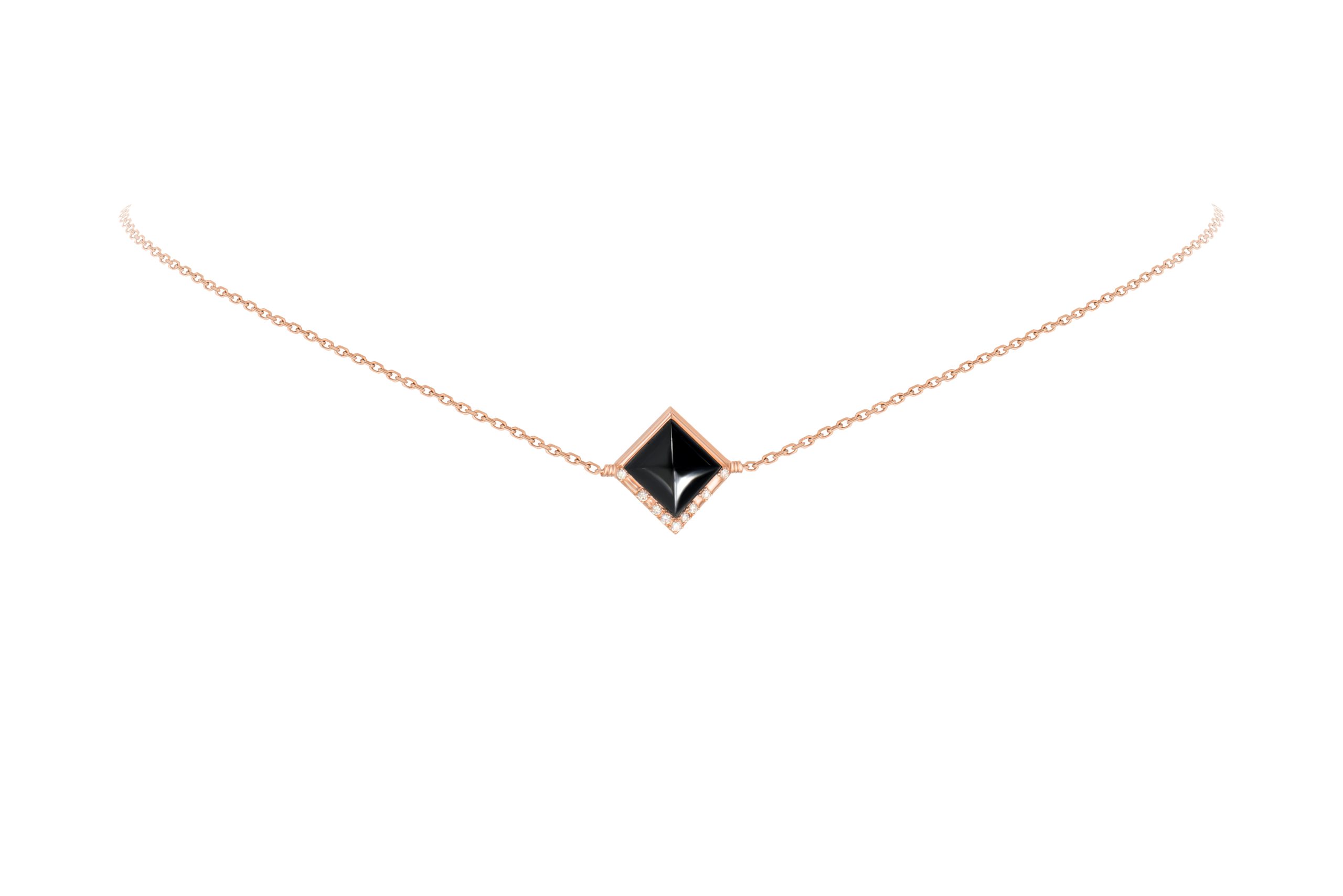 Pink Gold Pendant Black Jade Pyramid Shape 10mm (0.39 inches) and diamonds set on each side (total for 0.16ct)