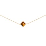 Yellow Gold Pendant Tiger Eyes Pyramid Shape 10mm (0.39 inches) and diamonds set on each side (total for 0.16ct)