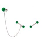 18kt White Gold Earrings with Green Agates and “rainy” diamonds.