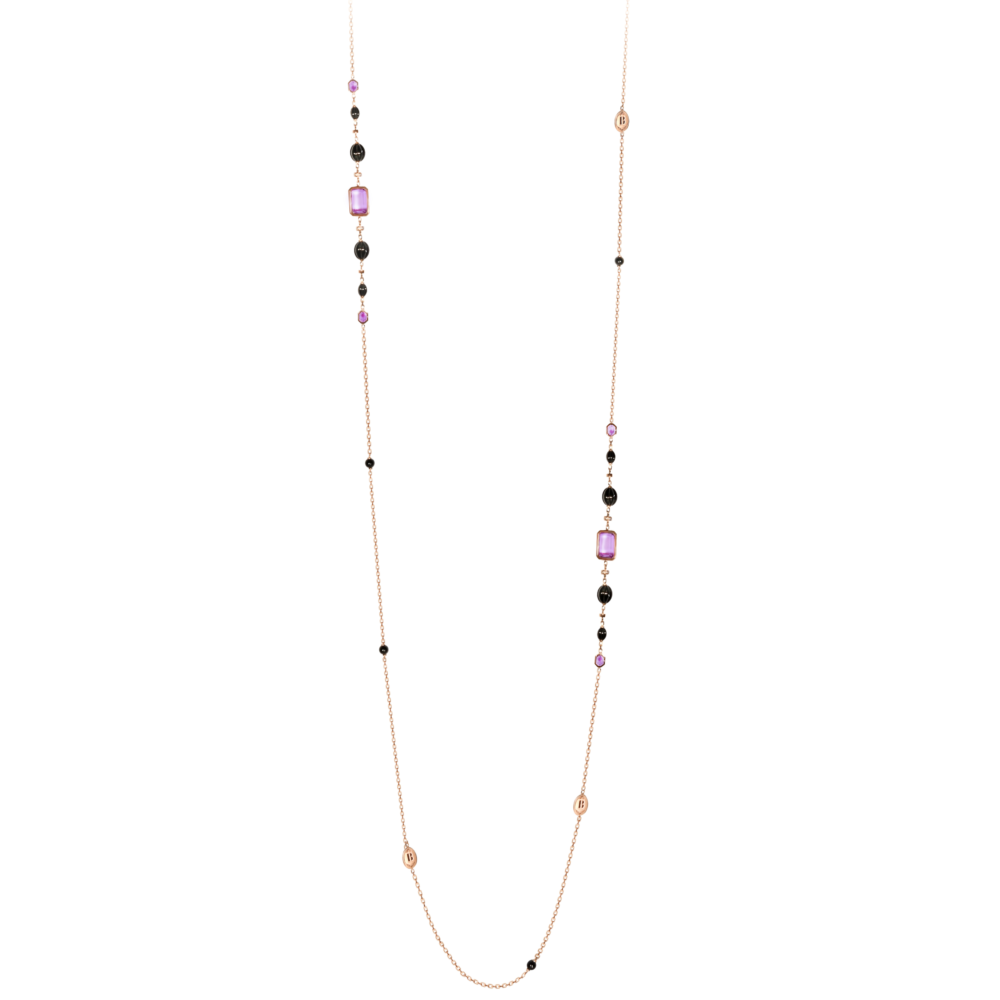 Sautoir Necklace Amethysts, Black Jade.